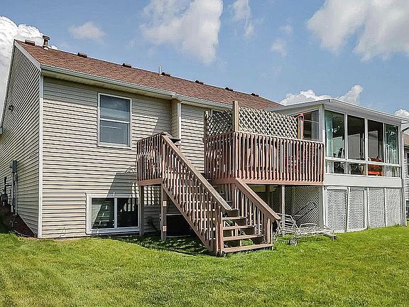 Welcome home to 3103 Winter Ridge, a 4-5 bedroom 2 full bathroom ranch, with just under 2,000 sqft of finished living space. This very well kept home is located in the Riley Ridge Subdivision. It boasts an open floor plan with vaulted ceilings, hardwood cabinets that provide plenty of storage, a master bedroom with a spacious walk in closet. 1st Floor has a office with "French" style doors and could double as a 5th bedroom or guest room. The attached 3 season porch opens to a deck with stairs, leading to the back yard containing a fire-pit and a swing-set/playhouse. The basement features 3 more bedrooms, a full bath, and a family room. An attached 2 stall garage completes this beautiful home! It wont last long, call me for your private tour today!