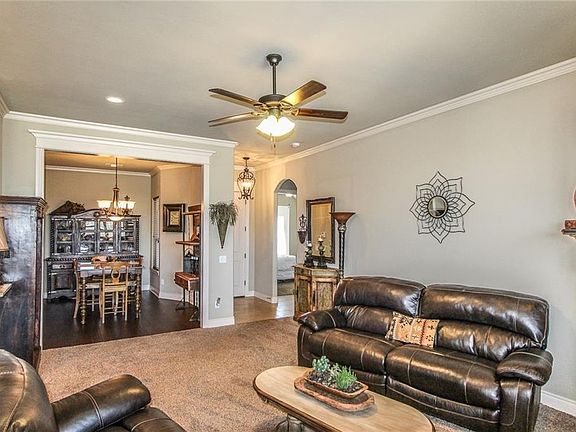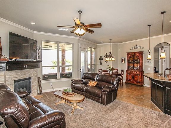 NEW PRICE and WASHER, DRYER, REFRIGERATOR INCLUDED! This home was built in 2016. It is a true 4 bedroom plus an office or formal dining. The kitchen is stunning with custom cabinets, tumbled travertine back splash, granite counter tops, built-in gas cook top/ oven/ and microwave, walk-in pantry, and a large breakfast bar. Other upgrades include gorgeous 7 ft doors, extra storage, and crown molding throughout. You will love relaxing on the large covered patio. The master bedroom is spacious and has a beautiful bathroom with his and her vanities, a jetted tub, a full tile shower, and an Australian closet with a floor to ceiling custom shoe rack. Hall bathroom opens up to one of the bedrooms. If you want a newer home without the hassle of building don't miss this beauty! Owners have added landscaping, fence, garage door openers, and blinds in bedrooms.