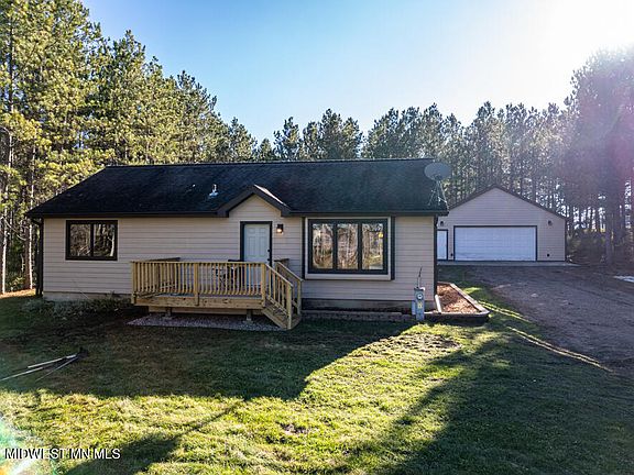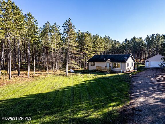 Recently renovated home on 3.28 acres just East of Detroit Lakes. Home features 2 bedrooms, 2 baths and laundry on main floor with oversized 30x40 insulated and heated garage. Updates include: LP Smart Siding, gutters, flooring, paint and new septic system. This is a beautiful rural setting with many newer homes in the area. Family/starter home with loads potential with unfinished lower level. Home is surrounded by mature pines and is 100% move-in ready!