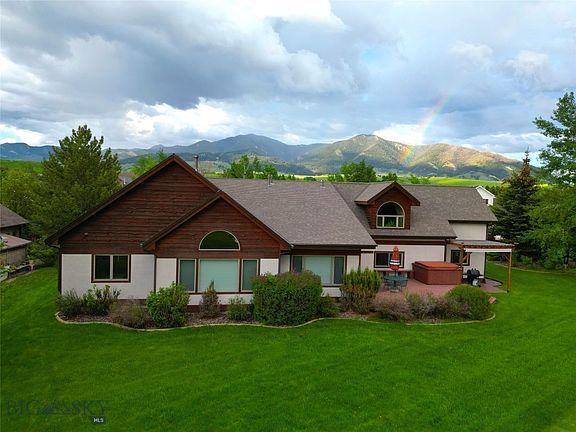 This stunning custom home situated on the 18th hole of Bridger Creek Golf Course is a MUST SEE. Upon entry, you're greeted by the cozy fireplace, vaulted ceiling, and gigantic windows, allowing for plenty of light as well as seasonal views of golfers and cross country skiers. The generous open kitchen and dining room gracefully flow into the living room. Beyond the back deck, the open space is framed by plenty of trees, so you can enjoy the changing of the seasons. The primary bedroom as well as guest bathroom, guest bedroom, and laundry room round out the first floor. The upstairs suite provides a veil of separation for guests with their own private view of the Bridger Mountains. Well thought out, they'll have everything needed for a comfortable stay, including: bedroom w/ private patio, living area, kitchenette, and 3/4 bathroom. So close to downtown Bozeman, the "M" & Drinking Horse trails, neighborhood trails, groomed trails for XC skiing, Bridger Bowl Ski Area, Story Mill Park...you'll be close to the best that SW Montana has to offer! Call your agent today for a showing!