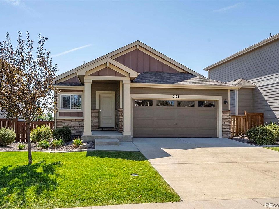 Stunning ranch style home backing to walking trail and open space with large deck and sun awning! Bright, open floorplan filled with natural light! Upgraded with extended wide plank floors. Kitchen boasts beautiful cabinetry with lots of counterspace, tile backsplash and large island with appliances included (stainless steel refrigerator is excluded, black refrigerator is included). Kitchen is open to dining & living room. Large primary suite has a private bath with soaking tub, separate shower and walk-in closet. Two secondary bedrooms share a full bath. Small multi-purpose room is perfect for home office or craft room. Great location nestled in the foothills, backing to open space with easy access to shopping, restaurants, trails and parks!