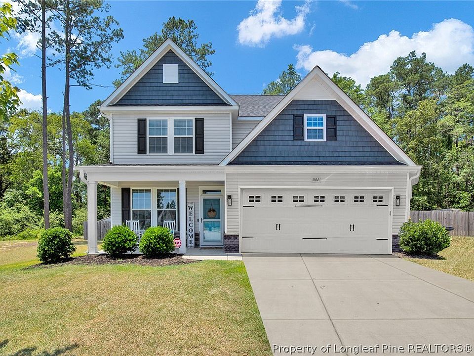 This 2020 built beauty features 4 generously sized bedrooms, 2.5 bathrooms, formal dining, & 2-car garage. The functional & spacious open-floor plan is complemented well by the vaulted ceilings & finishes. The front porch leads you into the foyer that opens to the formal dining room showcasing a coffered ceiling for added elegance. Large bright kitchen featuring a large island for gathering with family. A spacious main bedroom is located downstairs with a large on-suit, dual vanity, walk in closet, & garden tub/separate shower. Upstairs features a large loft that overlooks the living room. A full bathroom & 3 bedrooms with, again, HIGH ceilings! Step out back & be welcomed by the relaxing screened-in porch or pass through where you will find a gorgeous backyard ready for relaxing or entertaining - Equipped with a beautiful in-ground pool, extended patio, & fully fenced yard for privacy!