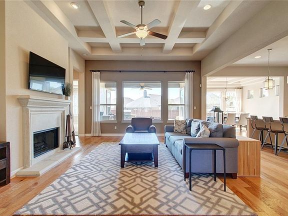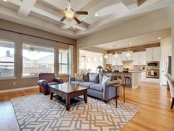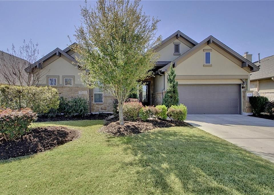 This home is truly a showcase! The finish out is top notch, as this was the Treaty Oak model home for the neighborhood. This home features 3 bedrooms and 2 1/2 baths, an office/study, with a light and bright, open floorplan. High, coffered ceilings, hickory wood floors, and a dream kitchen all make this the perfect place to come home to. The 2 car garage is finished out and on its own thermostat to use as indoor space when you want to. Backyard is huge with outdoor eating/kitchen area under the covered patio. Spacious master bed and bath with oversized master closet too! Too many upgrades to list here, but you won't want to miss this one!