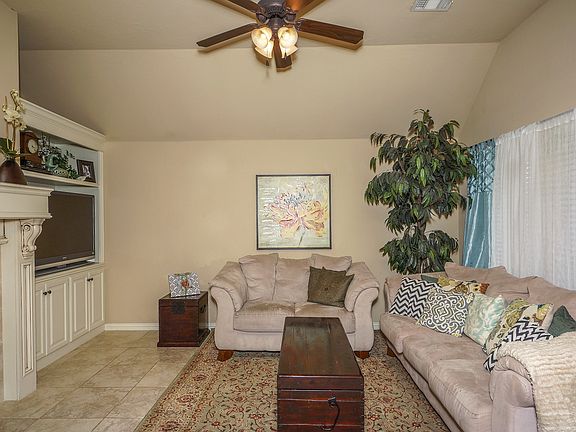 Beautiful one owner home with neutral colors throughout, open living space, study with faux painting and closet that could be used as fourth bedroom, stainless steel appliances and new storm shelter. Seller is offering 1 year home warranty.