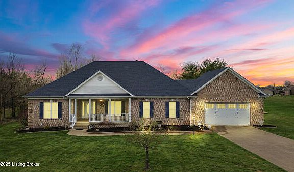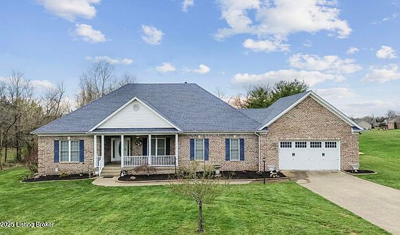 Welcome to this fabulous light and airy brick ranch located in Kentucky Acres in Oldham County! This fine home features: 3 good size bedrooms, the primary suite offers a trey ceiling w/ large bath, total of 2.5 baths, great size kitchen with breakfast bar and dining area, great room with trey ceiling and fireplace, dining area and sunroom with lots of windows. There is a large above ground pool with a deck and 2 car attached garage. New: paint and carpet in the great room and bedrooms. Updates per seller: roof, furnace and air all under 5 years. Easy to show and immediate occupancy.