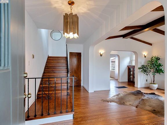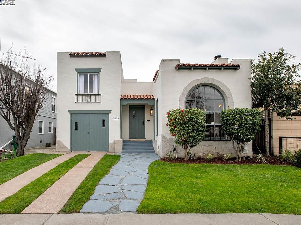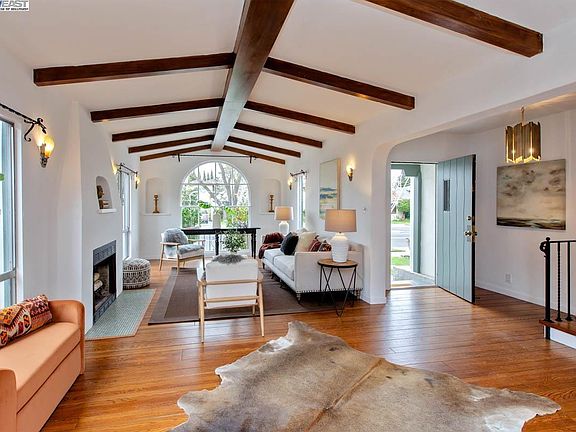 Built in 1931 in Alameda's sought-after Fernside neighborhood, this attractive Mediterranean-style bungalow has vintage charm, curb appeal and location to spare! Situated less than 1 mile to parks and highly ranked schools, the home offers 2 bedrooms, 1.5 bathrooms, formal living and dining rooms, a spacious kitchen, a large, sunny breakfast room and an attached garage. Vintage details include beautiful oak floors (recently refinished), arched doorways, a built-in sideboard cabinet, decorative wrought iron stair rails, and a dramatic, Spanish-style fireplace and cathedral ceiling with exposed wood beams in the living room. Very generously-sized rooms and abundant natural light throughout the home. Newly updated main bathroom, fresh interior paint + new light fixtures. Spacious backyard patio includes a citrus tree and mature + refreshed landscaping. Close to Edison Elementary + Lincoln Middle schools, Lincoln Park and Nob Hill Foods, with easy access to Park St businesses and I-880. A special home in a wonderful Fernside location!