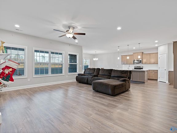 Welcome to the highly sought-after Rockford floor plan. This home makes a lasting impression with its charming exterior appeal & internal living functionality. The heart of the home is a sun-drenched family room with a fireplace. The open-concept design creates an effortless flow between living spaces, perfect for both daily life & entertaining. The chef-inspired kitchen is a culinary haven featuring expansive island, stainless steel appliances, & corner pantry. The spacious owners suite offers a luxurious bathroom & walk-in closet with peaceful separation from secondary rooms. Great outdoor space with oversized patio & private fenced yard. Convenient to I65, Decatur & Huntsville