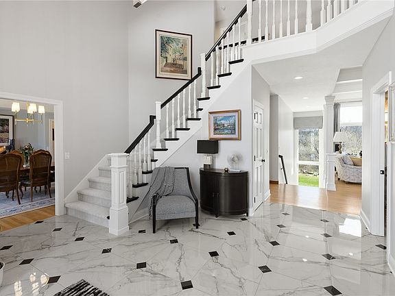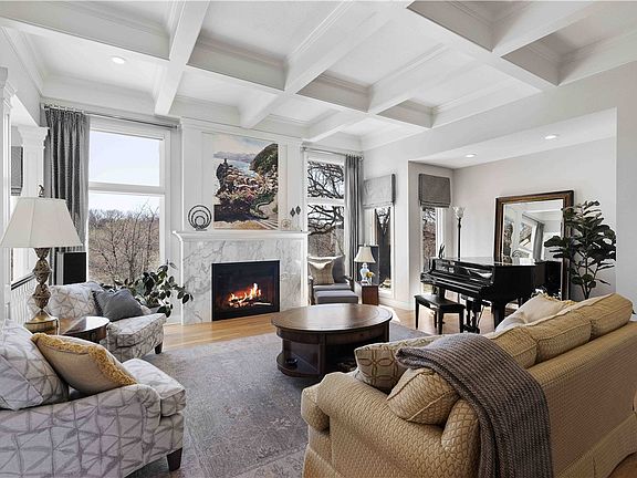 This one-owner, Homes by DePhillips 1.5 story resale is nestled on a 1.3 acre double lot backing to timber & oozing curb appeal from circle driveway to the professional landscaping! A 2 story entry welcomes you into a beautiful foyer w marble flooring. A formal sitting room boasts coffered ceiling, carrara marble FP & beautiful backyard views. Enjoy a hearth room w stone FP, built-ins, custom wet bar & vaulted sunroom w breathtaking wooded lot views leading to large two-tier composite deck. The gourmet kitchen offers cherry cabinetry, Wolf appliances, SubZero paneled fridge, eat-in kitchen area, custom trim details including arched pass through & multiple built-in buffets. A formal dining room, office w built-ins & half bath sit at front of home. The owner's suite boasts crown moulding, vaulted bathroom w His/Hers vanities & makeup counter, soaker tub, tile shower & multiple closets! A storage pantry, drop zone, 3/4 bath & laundry room complete main lvl. Access upstairs from 2 sets of staircases to 3 generous-sized bdrms each w large walk-in closets. 1 bdrm w en-suite full bath & other 2 bdrms share 2nd full bath. Also enjoy a library w balcony overlooking sunroom! The walkout LL can be accessed by 2 sets of staircases to huge living/rec space w kitchenette & 3rd FP, 5th bdrm, full bath, craft room, workout area, multiple storage areas & tuck under garden garage w backyard access. Outside enjoy a 3 car heated garage w epoxy floors, fully irrigated lot & mature landscaping!