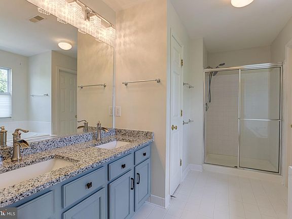 Exceptional home in the sought-after Terra Maria neighborhood offering four bedrooms, sun-drenched windows, a freshly painted neutral color palette and charming updates throughout. Enjoy a morning cup of coffee on the covered front porch that welcomes you as you arrive into the grand two-story foyer showcasing gorgeous hardwood floors that adorn the main and upper levels. The spacious living room and formal dining highlight accent millwork and are large enough to accommodate any size gathering. Prepare your favorite meals in the eat-in kitchen fully equipped with sparkling granite counters, exquisite tile backsplash, stainless steel appliances, 42" cabinets, center island, pantry and a breakfast nook with sliding glass doors to the back deck. Off the kitchen, the expansive family room is perfect for kicking up your feet and lounging with a cozy gas fireplace. A half bathroom and laundry room finish the main level. Ascend upstairs to the light-filled primary bedroom suite with a vaulted ceiling, massive walk-in closet with custom organizers and a spa bathroom with a glass-enclosed shower, soaking tub and dual sink vanity. Another three sizable bedrooms and the second full bathroom complete the upper level sleeping quarters. The lower includes access to the garage, a mud room area, the third full bathroom with a jetted shower and a large recreation room with space for everyone's activities and sliding glass doors to the backyard. Relax and unwind in the screened porch that offers peaceful views and tranquility. Two-car garage, two-car patio with ground drainage and two more driveway parking spaces. Delightful landscaping with fig and persimmon fruit trees and a fantastic backyard. Take advantage of excellent amenities right outside your front door with a community center, tennis court, playground, park with gazebo and the historic Terra Maria ruins. This beautiful Ryland Home has been updated with a new furnace in 2021, roof in 2020, and water heater in 2016.