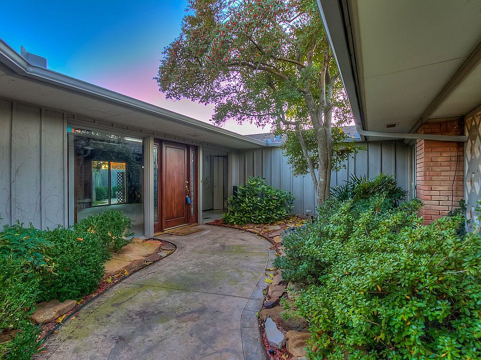 Nestled in the quiet centrally located neighborhood of Mayfair Hills, a secret garden awaits you here at 3104 NW 54th! This Mid Century home's striking exterior and peaceful front courtyard welcome you into a large vaulted living room flooded with natural light and a fabulous stone fireplace complete with floating hearth...talk about an amazing focal wall! The master suite is large with three closets, large bathroom and access to the back patio. Both secondary bedrooms are ample size and one has a patio door to the front courtyard and would make a lovely office. The backyard patios flow from the kitchen, living room and master bedroom and create the stage for many nights of entertaining among the stars. Then step beyond the fence into a beautiful terraced garden complete with storage shed for all your planting and gardening supplies. This urban sanctuary is just waiting for someone special to awaken its great potential. Now taking Back-up Offers