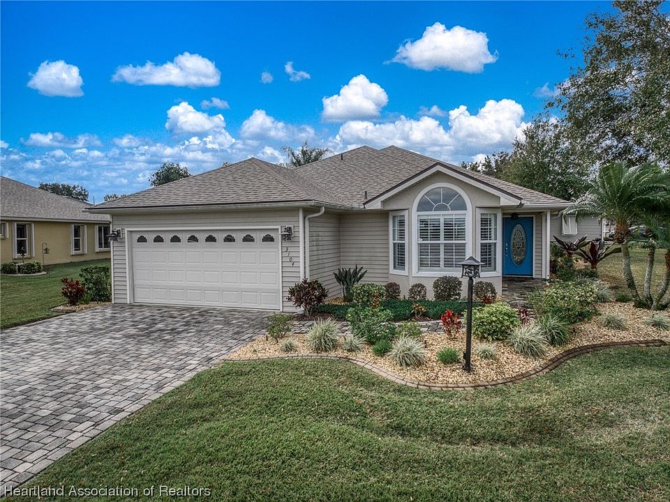 This 55+ Highlands Ridge 2 bed 2 bath plus den home is close to the Community Center and pool. The kitchen has been updated to give a more modern look, with open shelving, ss appliances and granite counters. The Breakfast area is located in the front of the home to watch people walking by. There is a separate Dining area for a larger group. The living room opens to the side enclosed porch. The large den is situated between the two bedrooms. There is an inside laundry room. The garage has a work bench. All gutters have leaf filters attached. In addition to golfing, there is pickleball, tennis, shuffleboard, and bocce ball. The community building offers many additional activities such as card games, pot lucks, bingo, and special entertainment events.