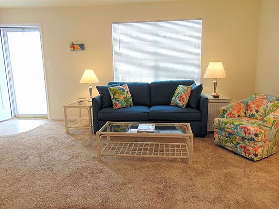 Only one Block from the beach! PRIME LOCATION! Enjoy sunshine and sea breezes from the covered deck of this recently updated first floor 3 Bedroom 2 Bathroom condo. Open floor plan provides plenty of room for guests in the Living room with new couch and lounge seat, Dining area and newly remodeled kitchen. Slow close cabinets and drawers, new counter tops and laminate flooring add to this space. There are three spacious bedrooms down the hall, as well as a laundry room. In addition to this unit's great location...New carpet has been installed and the unit is freshly painted. Turn key property perfect for your second home. This well-established, beautifully maintained and well-run complex offers outside showers, storage, 2 car garage and 1 additional parking space. There is a rental history for this property and serves as a great rental income for any investor! This property comes fully furnished. Just bring your bags and unwind.
