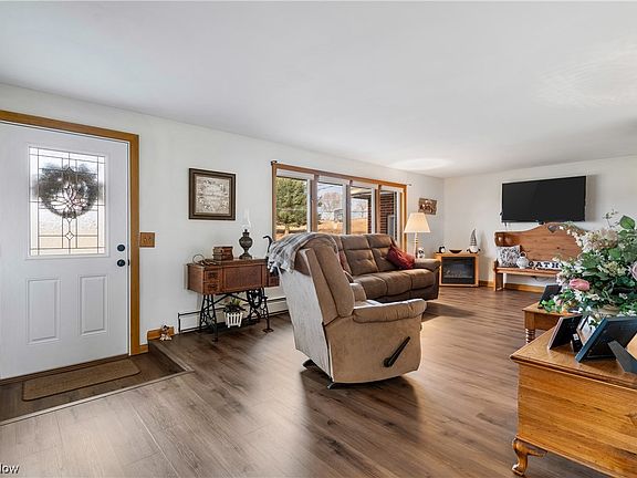 Escaping from it all is easy in this meticulously updated brick ranch home nestled on a serene 1.68 acre setting. As you step through the front door you are greeted by the spacious living room and endless natural light, creating a cheery feeling that reaches throughout it's lovingly maintained spaces. Enter the dining room, kitchen and family room areas and you'll find the heart of the home. Immediately you'll be impressed by the owner's attention to detail in creating a charming yet open space perfect for both relaxation and entertainment. The unique dining room wall, built-in hutch, custom kitchen cabinetry, wood beams, crown molding and trim seemlessley transition these rooms into one cohesive living space. The family room fireplace provides the perfect backdrop for cozy evenings and Christmas stockings. Doors from the family room provide easy access to the beautiful outdoor living spaces. Updated bath includes double vanity and walk- in shower with seat and handicap grab bars. Generously sized master and two additional bedrooms boast beautifully refinished hardwood floors, double closets and ceiling fans. A conveniently located first floor laundry can be found within the kitchen while a hookup still remains in the lower level should you prefer that option. Speaking of the lower level, freshly painted floor, rec room area with walk-out door, bonus room previously used as a 4th bedroom, 1/2 bath, laundry sink and tons of storage!