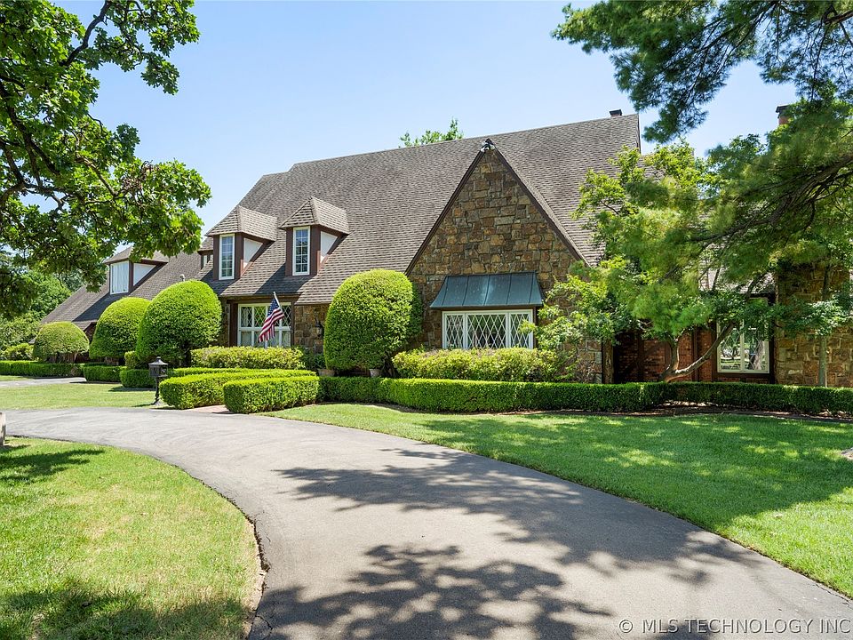 Located in The Trees addition on Columbia Circle. Gated & private. This English style home sits on 1.35 wooded acres & has been occupied by the owners for 35 years. Spacious, 2 story entry w/dramatic iron stair rail. Formals. Den Kitchen w/FP. Great room w/FP & vaulted & beamed ceiling. 1st floor MBR w/FP opens to walled back-yard & pool. Separate guest house over 3 car garage. Outdoor covered patio w/bluestone flooring, FP & kitchen. Garage entry in rear. Porte-Cochere, circle drive.
