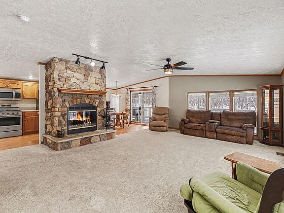 Own nearly 10 acres of land that is adjacent to federal which opens up endless options to take advantage of the great outdoors. This property is just minutes from all that Manistee has to offer. This beautifully maintained home sits back from the road in a lovely country setting. Living area is spacious and bright with lots of natural light. Fieldstone fireplace is wood-burning and is a cozy centerpiece of the living area. Eating area between the kitchen and the doors to the covered porch (27x8). Kitchen has lots of cabinets & appliances were all new over the last few years. Primary suite with a large private bathroom and walk in closet, includes a stand up shower and a garden tub. Two more bedrooms (one with a walk-in closet) plus another full bath. Laundry is conveniently located in the mud room off the back deck (12x28). Outbuilding is 26x30 and has 2 garage doors on the house side, and another garage door on the back side for a pass-through. Large work bench and lots of space.