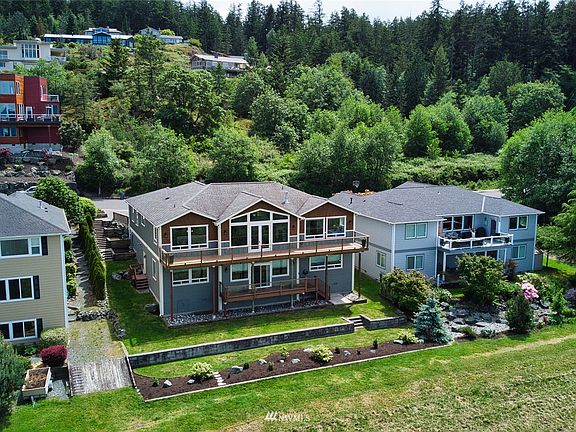 Enjoy watching boat traffic on Guemes Channel from this quality custom home featuring main level living, 4 large bedrooms plus den, and an excellent location close to downtown and ACFL. The great room gleams with natural light from floor-to-ceiling windows; the kitchen includes newer appliances, granite counters, and a walk-in pantry. The primary bedroom enjoys water views also, and includes an en suite and walk-in closet. Downstairs is a living area crowned with a second kitchen--an ideal room to entertain, or for a MIL space. With three additional bedrooms downstairs there's room for everyone, and another full bath and shop space with exterior entrance complete the lower level. Energy efficient radiant heating and tankless hot water.