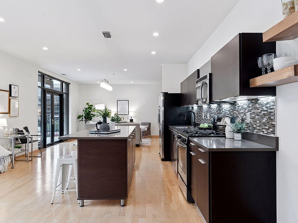 Center islandFloor-to-ceiling windowsOpen airy feelSpa-like bathLarge primary suiteIn-unit laundryStainless steel appliances