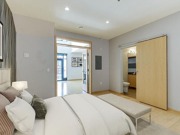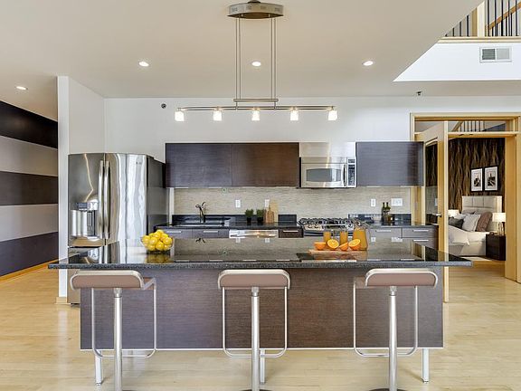 Striking top floor, sun-drenched, western exposure, 2-story Palm floor plan with incredible outdoor space – balcony & huge rooftop deck! Italian kitchen by Valcucine, large center island, granite, open floor plan and maple hardwoods throughout. Newer refrigerator. All major AC components are new! Off-street guest parking is a great perk. Walkable to lakes, trails, stores, restaurants, public transportation & more! Buy with confidence: 1-year home warranty provided. See 3D virtual tour.