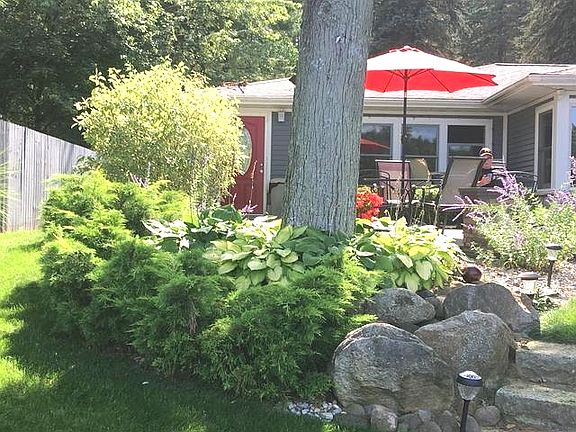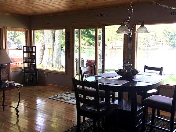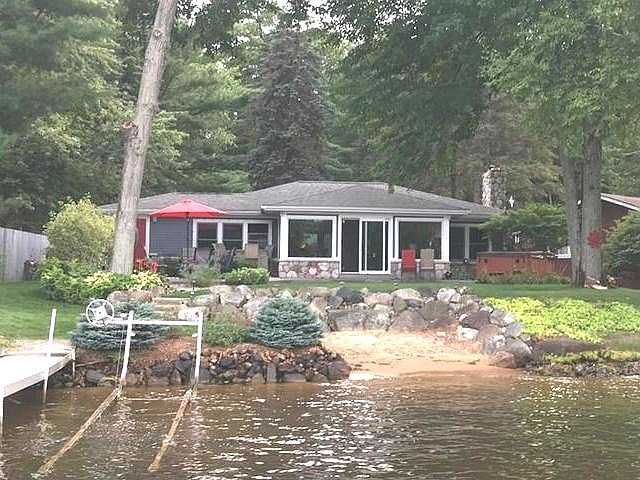 This one has the WOW factor. 2 bed1 bath on the main lake, ;Level to the water, with hot tub. The perfect place to entertain family and friends. Home sits on a beautiful, wooded, deep lot for plenty of space and privacy. Quiet and peaceful. Main house is 1458 sq ft. This property has the quality, view, beauty, privacy and level, sandy beach. What more could you ask for?
