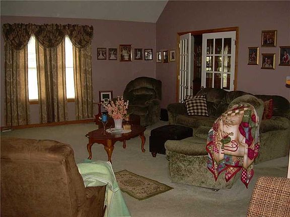 Beautiful one owner home. Kitchen features plenty of oak cabinets, pantry & center island plus adjoining dining area with sliding doors to deck; formal dining room with French doors to great room; cathedral ceilings enhance the great room, foyer, and 1st floor master bedroom with bath & walk-in closet. First floor office/den or 4th bedroom. Main floor laundry & half bath. Two nice size bedrooms with large closets & full bath on 2nd level. Full basement plumbed for bath. Custom built storage shed.
