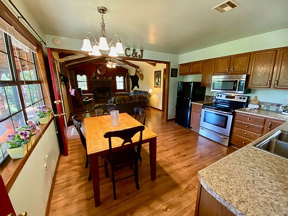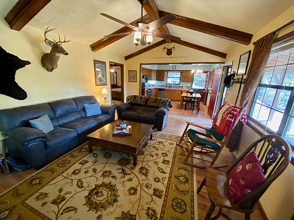 This amazing cabin-style home is located just down the road from Victor Landing at Wister Lake and offers the perfect mix of privacy, nature, and convenience. This all electric home has 1,008 square feet of living space and sits on 3.3 acres of secluded forest land. Inside you'll find 2 bedrooms and 1 bathroom, and outside you can enjoy a wrap-around porch that's perfect for relaxing in the peace and quiet of the woods. The property also includes a detached barn with a second-floor bonus room and balcony, giving you even more space and flexibility. Surrounded by trees and tucked away in the woods, this home offers the feel of a private getaway while still being only minutes from the lake. Directions: You'll drive roughly 8 miles, taking 11 minutes on average, traveling along a mostly straight path via the Broadway St. US-59/US-271 directly into Wister. From there, turn onto Dove Lane to reach 31041. Tenants are responsible for electric, rural water, trash service (optional), and lawn care. If you've been looking for a secluded retreat close to the water, this one is a must-see.