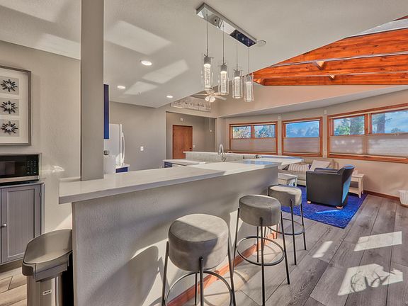 NEW: PETS ARE NOW ALLOWED. This charming, furnished guest house has a main level that's newly remolded with an open kitchen that's perfect for hosting guests. There is also a dining area, 3/4 bath and a living room with comfortable furniture and lots of natural lighting. Upstairs there are 2 spacious bedrooms and a large bathroom with a double vanity. The master BR boasts access to a balcony with views that will knock your socks off. Enjoy your morning cup of coffee while you watch the deer stroll by and admire Pikes Peak in the distance. Enjoy the flexibility of a six month lease. There is a monthly utility fee of $200 per month which includes internet, water, electric, gas, trash and recycling. Park in the attached garage. No smoking.
