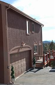 Wonderful home & setting. Private, secluded w/ majestic far reaching mountain views including a showcase view of Pikes Peak & beautiful sunrises. Close to nature...wildlife abounds. Expansive south facing decking to relax & unwind on! A beautiful home to entertain in. Inside you'll find an open floor plan with vaulted ceilings, custom designer colors welcoming you & your guests. Great kitchen layout with stainless appliances, Jenn-aire range & convection oven. Large Master suite w/5piece bath. Cozy, warm moss rock fireplace in the living room. The lower level family room w/wet bar & river rock fireplace is inviting & comfortable. Walk out onto the patio & soothe yourself in the hot tub. Low maintenance trex decking, paved driveway & stucco exterior home. Quiet & private, this home offers solitude & seculsion. Convenient to services with community water & sewer. In the Spring & Summer many wild flowers, columbines & tulips will sprout in the landscaped terraces. Shows very well.