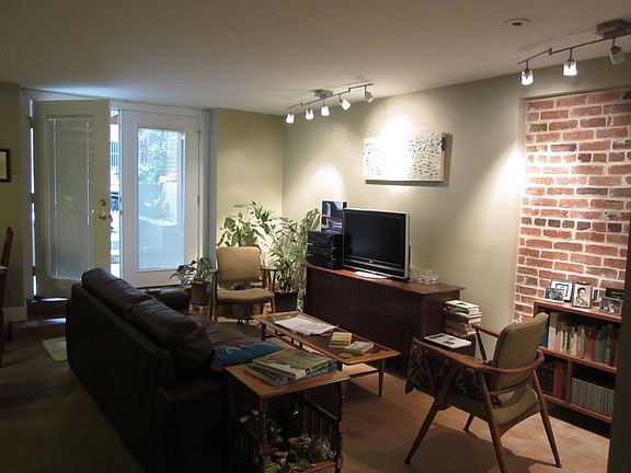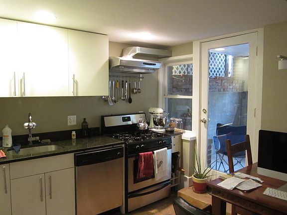 The apartment is app. 750 sqf in contemporary style, 8 feet ceilings. Open kitchen w. stainless steel appliances and granite countertops, heated floors, central air, French doors (lots of light) opening onto private screened, garden, shared washing and dryer, separate interior and exterior storage.
