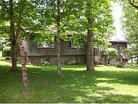 One of a kind acreage close to town. Spacious 3 bedroom 3 bath home on corner treed lot. This is a unique home with 4,352 square feet. Spacous open floor plan with beamed cathedral ceilings. Upper loft area. Main floor family room with skylight. Lower level large family room with wall brick fireplace with barbeque area. Beautiful brick bar in large bar room. Brick patio. Deck new approx 2 years ago. This home features two double garages attached. All soffits were skinned with aluminum. Storage shed. Spacious eat in kitchen with pantry and tons of counter and cupboard space. Large open living room with dining area. Shingles in 2000 and also roof of masterbedroom area redone 2007 when tree fell. Septic was inspected and pumped June 2010. There is natural gas to garage but not hooked up. Rural water is across the street. Appliances stay. Call for your private viewing of the beautiful home!