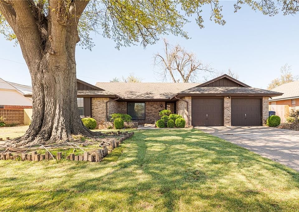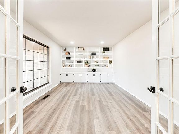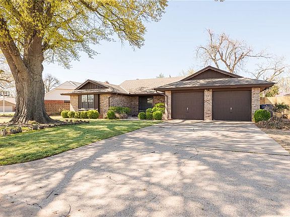 This refreshed ranch-style home in Windsor Hills is sure to steal your heart! Located in an exceptionally quiet neighborhood in NW OKC, this home its on nearly a quarter-acre lot and boasts mature trees, a lush front lawn, and black windows that create immense curb appeal. Entering the front door, you'll find a spacious room to your left through the french doors; this is the perfect space for a play room, home office, formal dining or second living room! Fresh paint throughout and a gorgeous fireplace in the living room flanked by built-ins bask under loads of recessed lighting. A dining space opens to the kitchen- which features freshly painted cabinetry, granite counters, new tile + hardware and stainless appliances. Master suite showcases two closets & a renovated bathroom with new counters, paint & fixtures. Guest bathroom has also been renovated! Large backyard with covered porch. This home offers a wonderful floor plan and has so many great features!