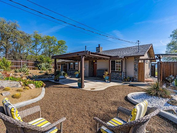 Welcome to 3105 Barde, an escape from the hustle and bustle of life and immerse yourself into the tranquility of this home located just 5 miles from New Hogan Lake. The care and attention to detail that was put into the front yard will make you feel like you stepped into a yard out of a Better Homes and Garden magazine. Enjoy dinners while watching the sunset under your covered gazebo or morning yoga while listening to the peaceful sound of water flowing. This 2-bedroom 2 Bath home has been completely renovated and updated in 2022. Newer appliances, fixtures, paint, laminate floors, quartz countertops throughout the entire home. Private courtyard off master bedroom to enjoy your morning coffee with garden beds and automatic watering system and power available for spa. Have I mentioned the views, enjoy a barbeque on your back patio with unobstructed views of Hogan Dam and the yearly firework show from your backyard!! With fully usable 1 acre there is plenty of room for your animals, crossed fenced for horses or room for large shop. Fully fenced side access for RV parking and hookups with power and water or possible site for ADU or Tiny Home. An optional HOA is available to residents that includes a clubhouse/Rec room and pool to enjoy your summer days!!
