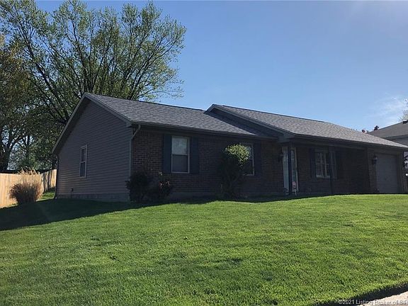 Location, location... This home has a lot to offer. Well maintained 3 bedroom, 2 full bath brick home. Main bedroom has full bath with tub/shower. New updated laminated flooring in bedrooms and bath. Enjoy the natural lighting in bath with skylight window. Updates include washer/dryer, dishwasher 2017. roof 2019, HVAC 2019, Smart Home security alarm 2021 and vinyl siding. Enjoy out back shade under the large hardwood tree. Custom built shed, concrete patio and back yard in partially fenced. Conveniently located to Veterans Parkway and I-65. Golfers in the family? Minutes to Elks Run semi private golf club. Spacious open floor plan, vaulted ceiling with fans & living room opens to large dining area extending to kitchen with pantry. Extra storage room in one car attached garage with electric opener & concrete driveway leading to public sidewalks. Sq ft and room dimensions are approximate.