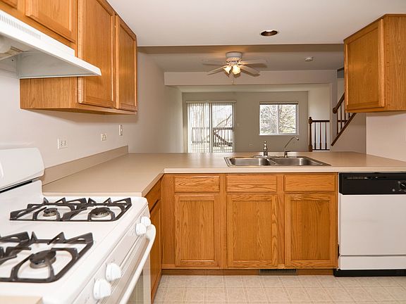 Located in the desirable Timber Trails, this move-in ready townhome offers 3 floors of living space with 2 bedrooms, 1-1/2 baths, finished basement, and a 1 car attached garage. Foyer leads to a half bath and open kitchen. Kitchen includes all appliances, a breakfast bar, and overlooks the spacious dining/living room combo. Patio doors lead outside to a deck, where you can enjoy a peaceful, park-like setting with mature trees and charming pastoral views of a neighboring farmette. Upstairs has 2 sizable bedrooms with generous closets, a dual access full bath, plus a convenient 2nd floor laundry room. Finished basement offers a large multi-purpose room with bright windows. Enjoy this room as a family room/home office or use it as you please. Basement includes a utility room with furnace, water softener, storage shelves. A sought-after location at the end of a quiet, friendly cul-de-sac, it has additional guest parking just steps away. Conveniently located close to shopping and restaurants, some are within walking distance. Freshly painted and carpets cleaned, it's ready to be your next home.