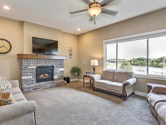 Don't miss this custom home on the lake in Riviera! Home has wood floors throughout the open concept living room, kitchen, and dining room. Master bath features a walk-in shower. Granite in the kitchen and bathroom counter tops. Owners paid extra to add more windows to overlook the lake, creating a beautiful view. The walk out basement is almost completely finished except for flooring some wood work and paint. It has a family room, 2 bedrooms, and a bath. It has a wrought iron fenced backyard, sprinkler system and well. Outside has an extra-large 14 x 16 covered deck overlooking the lake for summertime gatherings!