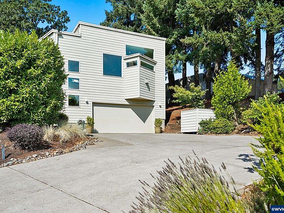 Unique contemporary home, featuring an open plan with daylighting design, including four skylights and numerous windows for natural lighting. An open loft office overlooks the living room. Newer LVP flooring. Private patio wired for hot tub. Deep garage with a bonus room (currently wine bar) and large storage spaces. Stairlift from garage. Roof is TPO polymer. Landscaping design with fig tree, grapes and herbs featured in Statesman Journal, June 4, 2004. Make sure and check out the virtual tour video!