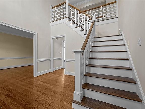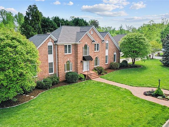 NEW UPSTAIRS HVAC installed June 2024! A PRICE REDUCTION provides you with room to put your own personal stamp on the kitchen and bathrooms and add your choice of flooring and paint. Abundant windows flood all the rooms with natural light, which accentuates the tray, vaulted and slanted ceilings and rich moldings. Chippendale railings line the stairwell and upstairs passageway that overlooks the front foyer on one side, and fireplace in the family room, which is flanked by Palladian windows and French doors leading to the spacious terrace, on the other. Hardwood floors further reflect sunshine. 4 bedrooms and a bonus room are carpeted and augmented by three and a half baths. Sloped ceilings in some of the upstairs rooms, including the bonus room, add to the charm. The kitchen has a breakfast area full of windows and its own set of stairs to the upstairs bonus room and hallway. Great Burlington location!
