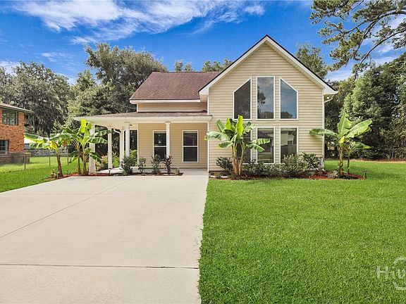 Welcome to this beautiful Thunderbolt home designed for both elegance and comfort. Hardwood floors flow through the main living areas, while granite countertops add a touch of luxury throughout. Cathedral ceilings and oversized windows bring in natural light, creating a warm and inviting atmosphere. The open floor plan is perfect for entertaining, featuring stainless steel appliances, a large kitchen island, walk in pantry, and beautiful cabinetry. Spacious bedrooms include walk in closets, and the bathrooms offer generous counter space with large walk in showers. A private upstairs suite has its own bathroom and overlooks the wooded back yard. Take advantage of extra storage with the backyard shed. Enjoy peaceful mornings or evening sunsets on the wraparound covered porch, ideal for relaxing or gathering with friends and family. Schedule your private showing today!