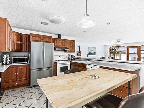 "You will find this waterfront home 2.2 miles south of the iconic Aerial Bridge in the Park Point neighborhood. This easy living bayside cottage offers one level living and great views of the bay from the kitchen, living room and two of the three bedrooms. It’s the perfect home for recreational opportunities or tranquility and relaxation. From the dock, set out into Superior Bay, the St. Louis River Estuary or into Lake Superior. Across the street you’ll find a boardwalk to the sandy beach of Lake Superior plus historic Lafayette Square Community Center. After your adventures, relax on the large deck or in the hammock or inside by the Morso wood stove. Notable features include hardwood flooring, tile in the kitchen and bathrooms, an attached, heated and finished garage, and a large back yard for your toys. Enjoy the 80 feet of shoreline with a seawall, a boat shed with a green roof and beautiful trees.