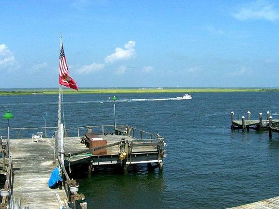 LONGPORT BAYFRONT at a greatly reduced price!  Picturesque bayfront home with docks is located in exclusive Longport, NJ.   The lovely great room has vaulted ceiling and wood burning fireplace. Enjoy the sun room. eat-in kitchen and bedroom suite on the first floor level.  The second floor features a balcony which overlooks the great room, one bedroom with half bath and a large bedroom with sliding glass doors and a deck overlooking the bay.  Docks are convenient to the inland waterway and can be configured to accommodate your boating needs.  There is a separate garage for one car.  The property has a bulkhead and riparian grant.  The lot measures  61 x 64 feet. A rare find, this Longport bay front property can be enjoyed now and developed in the future.  Move right in and enjoy bay front boating and spectacular views or design your own architectural masterpiece. This property has great potential!