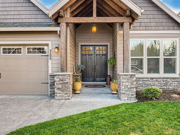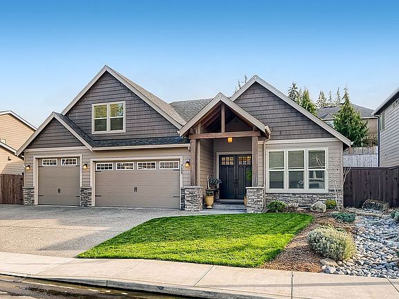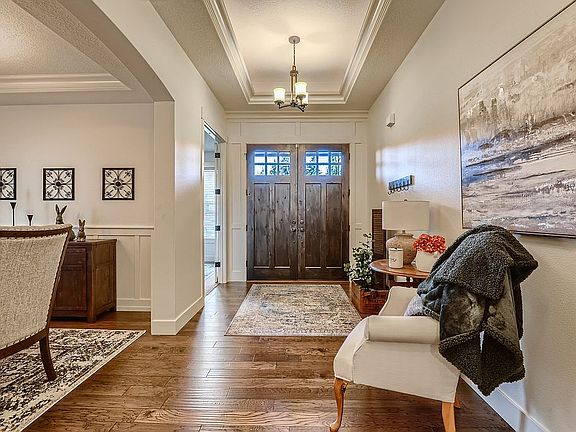 Quality built craftsman home featuring beautiful upgrades: 10ft ceilings, 8ft doors, hardwood, granite, travertine floors, gorgeous woodwork & cabinetry! Main Level Master suite with tile shower and soaking tub. Great-Room layout with gourmet island kitchen featuring upgraded appliances, copper hood and full size fridge and freezer. Foyer entry with den & formal dining with additional Guest Room, hall bath and large utility room on main level. Upstairs boasts 1 bedroom, full bath plus Bonus Room. Extra deep 3 car garage with 8 foot doors, custom professional landscaping, water feature, flagstone patio, fire pit. Large RV parking on side of home. No real estate agent calls please. No BAC offered.