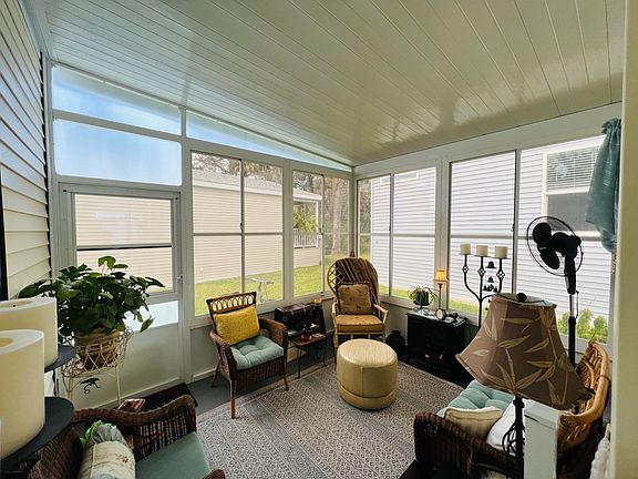 Looking for a home in the sunshine state ?? This two-bedroom and two-bath home is located on the perimeter lot and is in an age-qualified community The oaks of Colony Cove. This home has many wonderful features, with many upgrades. Before you even enter this home, you will be attracted to the new front flower garden with stone edging new plants and rock covers. As you enter through the front of the home this area of the porch has been screened and a screen door added for your convenience. Once you enter the home a beautiful living room will greet you. Adjacent from the living room to the kitchen and dining area. Plenty of room to entertain your friends. The master bedroom has a huge walk-in closet and is large enough for a king bed. Gorgeous double vanity in the master with glass shower doors. Generous linen closet towels for all of your toiletry needs. The guest bedroom has also been enlarged and will definitely house a guest-size bed. Indoor laundry facilities GE washer and dryer. As you exit through the laundry door you'll find a beautiful screened-in lanai with sliding vinyl windows. two screen doors were added to this room for easy access. You will be enjoying the quiet quaint area in the evenings reading the newspaper or enjoying a cocktail. Rain gutters with leaf filters have been installed in this home on the south side. this also includes a lifetime transferable warranty. A flood light in front of the shed has been installed also with an electrical outlet panel in the rear of the patio. As you can see many many upgrades to this home. Lot rent $ 1.038.94. Located along Florida's Gulf Coast, in highly sought-after Manatee County, Colony Cove is an age-qualified, resort-style mobile home community with waterfront views, premier new homes, and amenities designed around an active lifestyle. Much more than a place to live, Colony Cove and The Oaks at Colony Cove is the perfect place to stay active, make long-lasting friendships, and enjoy the life you deserve. Residents enjoy a private marina with dry and wet boat slips, five spacious clubhouses, six heated swimming pools, pickleball and tennis courts, two fitness centers, two dog parks, billiards, and much more! Love the outdoors? Colony Cove is in the quaint town of Ellenton, just outside the Bradenton and Sarasota metro area. Sarasota is the gateway to miles of beaches with fine sand and shallow waters, like Lido Beach and Siesta Key Beach. Enjoy sunbathing, fishing, boating, or site seeing some of the nation's most beautiful beaches on Florida's Suncoast. The area is also known for diverse dining, enriching arts and culture, and premium shopping districts. It hosts several cultural institutes, most famously, the Ringling Museum of Art, which showcases old masters and modern art. If you're looking for a comfortable, friendly atmosphere, with easy access to everything that makes Manatee County one of Florida's most vibrant areas, Colony Cove is the perfect place to call home. All listing information is deemed reliable but not guaranteed and should be independently verified through personal inspection by appropriate professionals. Integrity Mobile Home Sales cannot guarantee or warrant the accuracy of this information, measurements, or condition of any property. Measurements are approximate. Lot rent is subject to change.