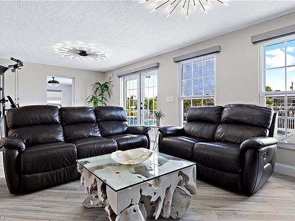 BEST NEIGHBORHOOD IN SE CAPE! DIRECT GULF ACCESS - with a private dock, electric boat lift, and easy access to open water! NO FLOOD ZONE, NO FLOOD INSURANCE REQUIRED with FULL 1 YEAR HOME WARRANTY INCLUDED! Home is FURNISHED with your purchases. NEW ROOF in June 2023 with 3rd nail retrofitting - this provides extra protection during high winds and saves additional money on insurance. Three bedroom, two bath, open concept home with high-end finishes, newer stainless-steel appliances and newer washer and dryer. This peaceful home is the perfect retreat for those seeking an upscale waterfront lifestyle. Serene outdoor living space for entertaining guests poolside or simply relaxing and enjoying the views. Large windows provide natural light with custom-remote-controlled window treatments throughout. Home has a large front and back yard, circular driveway and is on dead end street. Minutes from dining, entertainment & shopping. Close to Downtown Fort Myers over the Midpoint Bridge less than a mile away. Fabulous rental income potential when you're not enjoying the home yourself with no lease restrictions and no HOA. **No flooding from Hurricane Ian** New soffits and new gutters to be installed soon.
