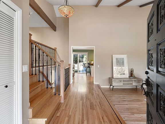 Situated in the highly desirable West Slope neighborhood, this beautiful home offers a prime location just minutes from downtown, the Oregon Zoo, and the Portland Golf Club, with easy access to HWY 26. Tucked away on a quiet dead-end street, this home goes to highly rated Beaverton Schools. Hardwood floors enhance the warm and inviting atmosphere, while vaulted ceilings in the spacious living room add to the sense of openness. The layout features a large primary suite, two cozy fireplaces in the living and family rooms, and a wonderful kitchen with granite countertops and a charming eat-in area. Step outside to a stunning, fully terraced backyard with an elevated patio perfect for entertaining, a fully turfed area for year-round enjoyment, and low-maintenance landscaping.