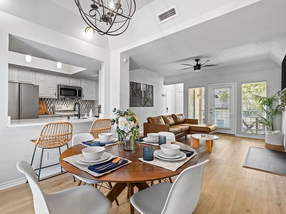 Welcome to this beautifully renovated condo in the serene Bryan Place community, just minutes from downtown Dallas. Perfectly blending modern updates with functionality, this stylish residence offers two spacious bedrooms, 1.5 bathrooms, and two covered patios ideal for relaxing or entertaining. Inside, you’ll find luxury vinyl plank flooring, quartz countertops, and a renovated bathroom. The open-concept living, dining, and kitchen areas are filled with natural light from numerous windows. The kitchen features a mosaic tile backsplash, quartz counters, and a convenient pass-through breakfast bar. The primary bedroom includes an updated ensuite bath with a frameless glass shower and a walk-in closet, while the secondary bedroom offers direct patio access, perfect for guests or a home office. Enjoy peaceful outdoor living on either patio, or take a short stroll to Exall Park, just one block away. Location is key, this condo is also within close proximity to the vibrant bars and restaurants along Ross Avenue, making it easy to enjoy the best of Dallas nightlife and dining. Modern comfort, updated finishes, and an unbeatable location, you’ve just found the one!
