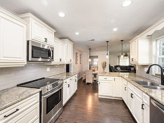 PRICED TO SELL!!! Step into the tranquil oasis of this inviting 3 bedroom, 2 bathroom CONCRETE block sparkling POOL home nestled on a generous .42-acre lot. NO HOA!!! As you enter the front door you will be greeted with AMPLE living space, beautiful light fixtures, and LAMINATE WOOD flooring throughout. Both bathrooms have been tastefully renovated each with double vanities and step-in showers. Kitchen features STAINLESS STEEL appliances, granite countertops, plenty of wood cabinetry, and a beautiful view of your backyard pool patio oasis. Home entails ceiling fans throughout, large indoor laundry room, with additional storage, and walk-in closet in primary bedroom adding to your convenience and comfort. The eye-catching METAL ROOF was installed in 2019 promising durability and longevity for many years to come as well as a recently installed tankless water heater. Both the electrical panel and meter were updated and installed in 2020. New well installed in 2021, new pool pump in 2023, and new garage door opener in 2024.