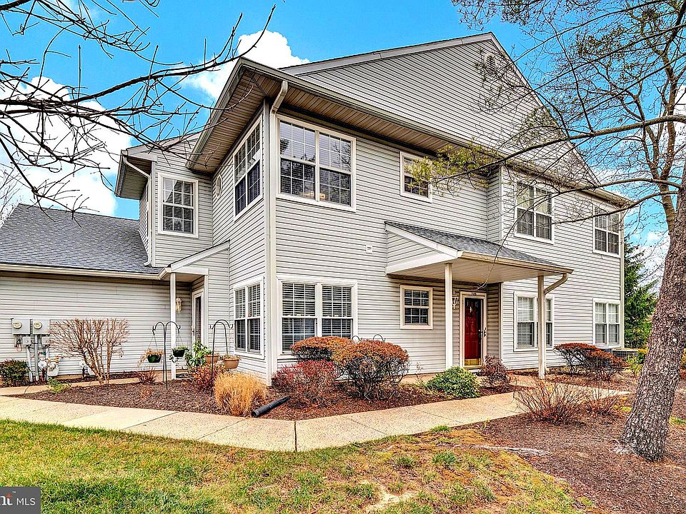 Bright and sunny first floor 2 BR/2 BTH end unit in Brookstone. One floor living! The unit features 1350 square feet, an enormous living room/dining space, a beautiful white eat-in-kitchen, 1-car garage, two patios, and a large primary bedroom with en-suite and two walk-in closets. Tons of natural light, neutral paint and freshly cleaned carpeting. All you need to do is move in and unpack! The community features an outdoor pool, fitness center, and tennis courts set amidst beautifully landscaped grounds. The association fee includes all exterior maintenance, lawn care, snow, and trash removal. Brookstone is conveniently located close to major highways, shopping, and restaurants and sends to Pennsbury schools.