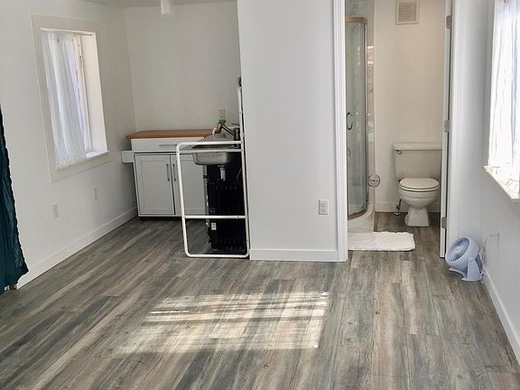 Brand new guest house: modern, vaulted ceilings, pendant lights, hardwood laminate floors, kitchenette with mini-fridge & hotplate, sliding doors, granite and glass shower with pedestal sink. Very bright and clean. Some utilities are paid to main house tenant.