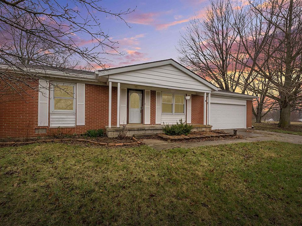 If you're looking for quiet country living on acreage, this is the home for you! Located just north of the county line, this all brick home has been updated with a new roof, fresh paint and flooring and so much more! Sitting atop a 3.3 acre lot, this home has much to be desired. Walk in to the living room with large windows providing an abundance of natural daylight. Continue to the kitchen, which opens up to the family room and backyard with an excellent concrete patio- making hosting special events a breeze! Plenty of storage is available in the home, and is aided by the spacious 2 car garage and additional shed. The bedrooms features beautiful hardwood floors. This whole home is protected by a brand new roof (2022), a new well pressure tank (2018), and newer garage door.