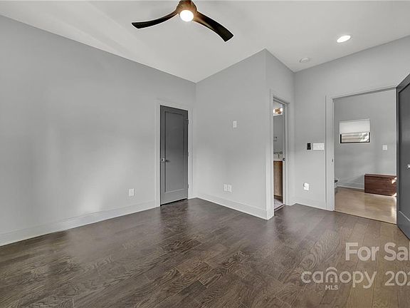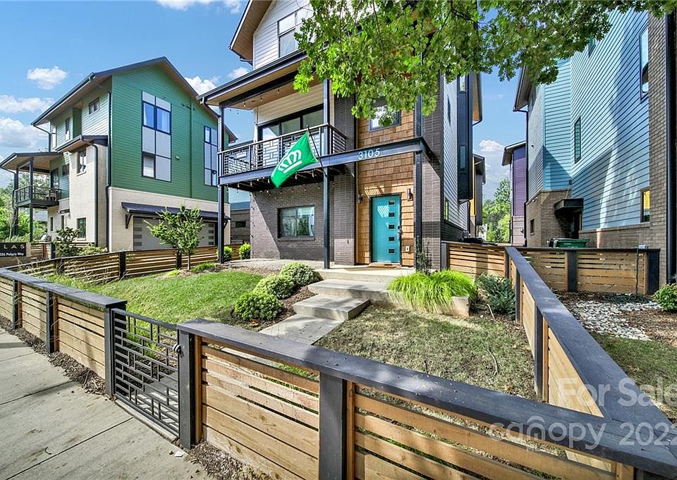 Welcome to Atlas Urban Homes, an enclave of midcentury-inspired architecture just a short walk to "Main Street" NoDa. Named "2021 Best In American Living for Single Family Homes! This plan features an open living level with breakfast nook, dining area, great room with distressed wood accent TV wall, kitchen with large eat-at island, pop-up outlets, tile backsplash, black stainless appliances (including gas range) and matching butler's pantry with wine fridge, PLUS walk-in pantry. Hardwoods were added throughout the entire house and built ins in the living room. The living area opens via 3-panel slider onto a large balcony off with a streetscape view, custom metal railing. As well as a first floor bedroom suite perfect for guests, roommates or a home office; and a 3rd floor primary suite with 12' vaulted ceilings with distressed wood accent, oversized walk-in closet, stunning glass enclosed shower & freestanding tub, dual vanity and water closet.