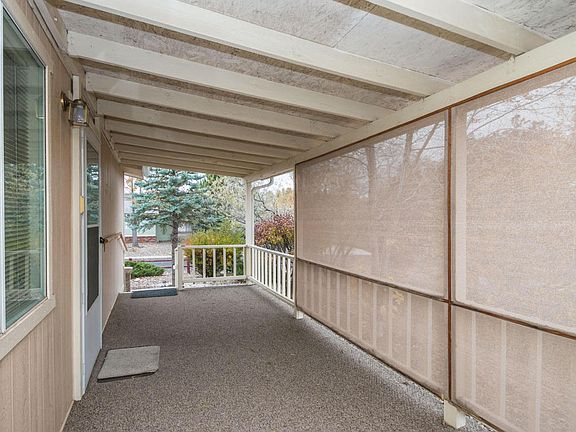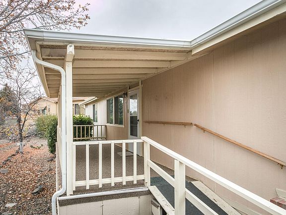 Great manufactured home in quiet neighborhood and prime location. Lovely covered porch with views of Mingus. Well thought out floorplan, large living room with dining area, spacious eat-in kitchen with plenty of cabinet area, split bedrooms and enclosed patio off covered carport as well as workshop/storage area. So close to everything, shopping, restaurants, and the new CVS.